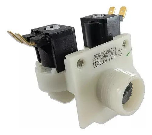 Essa válvula é responsável por controlar a entrada de água (e, em alguns casos, de sabão ou amaciante) na lavadora, acionada por solenóides que abrem e fecham conforme o ciclo de lavagem.